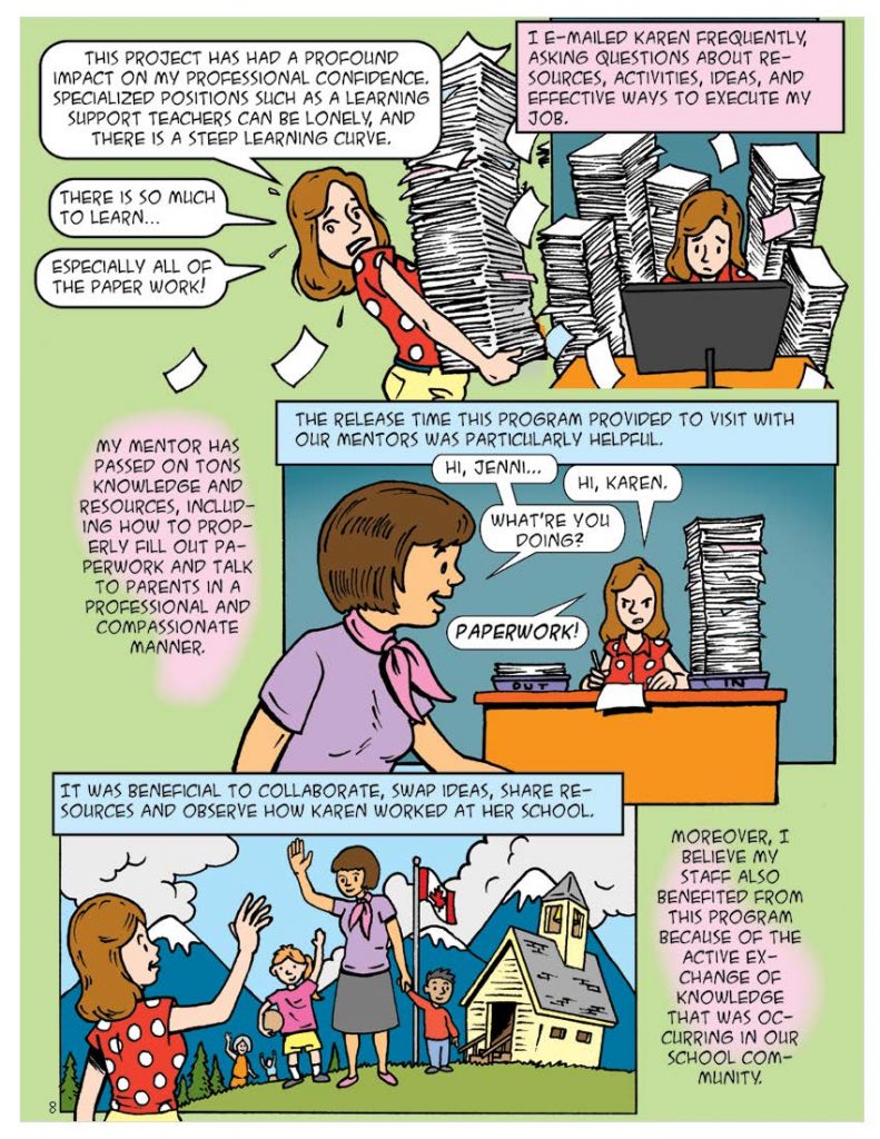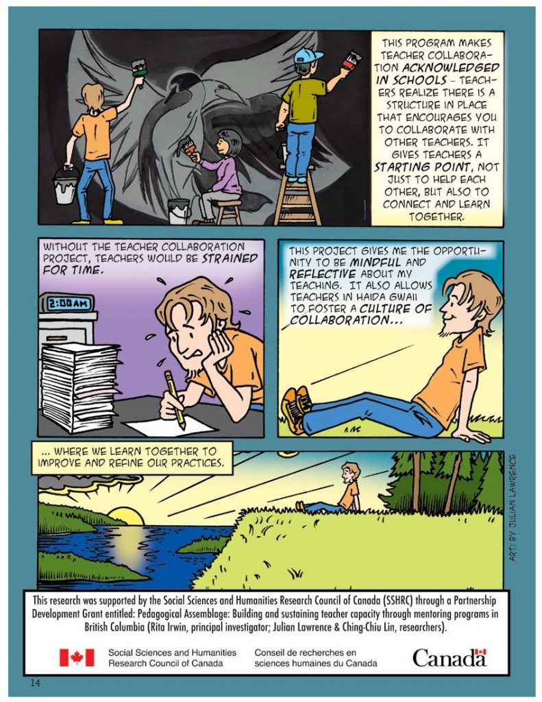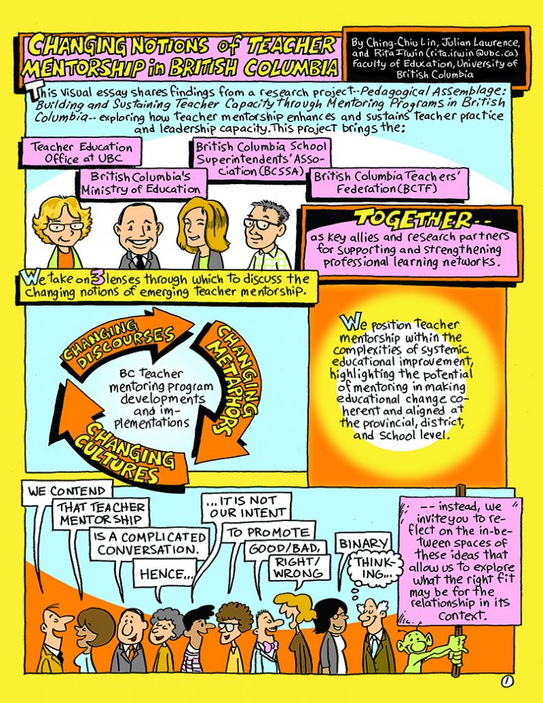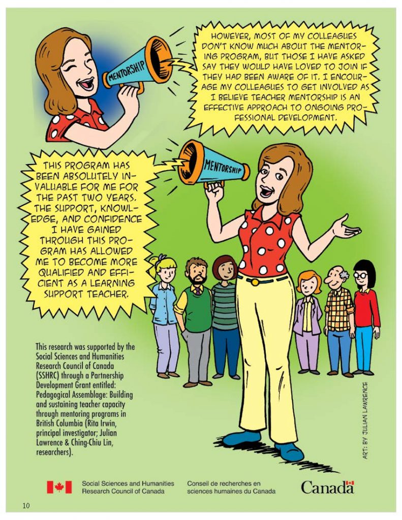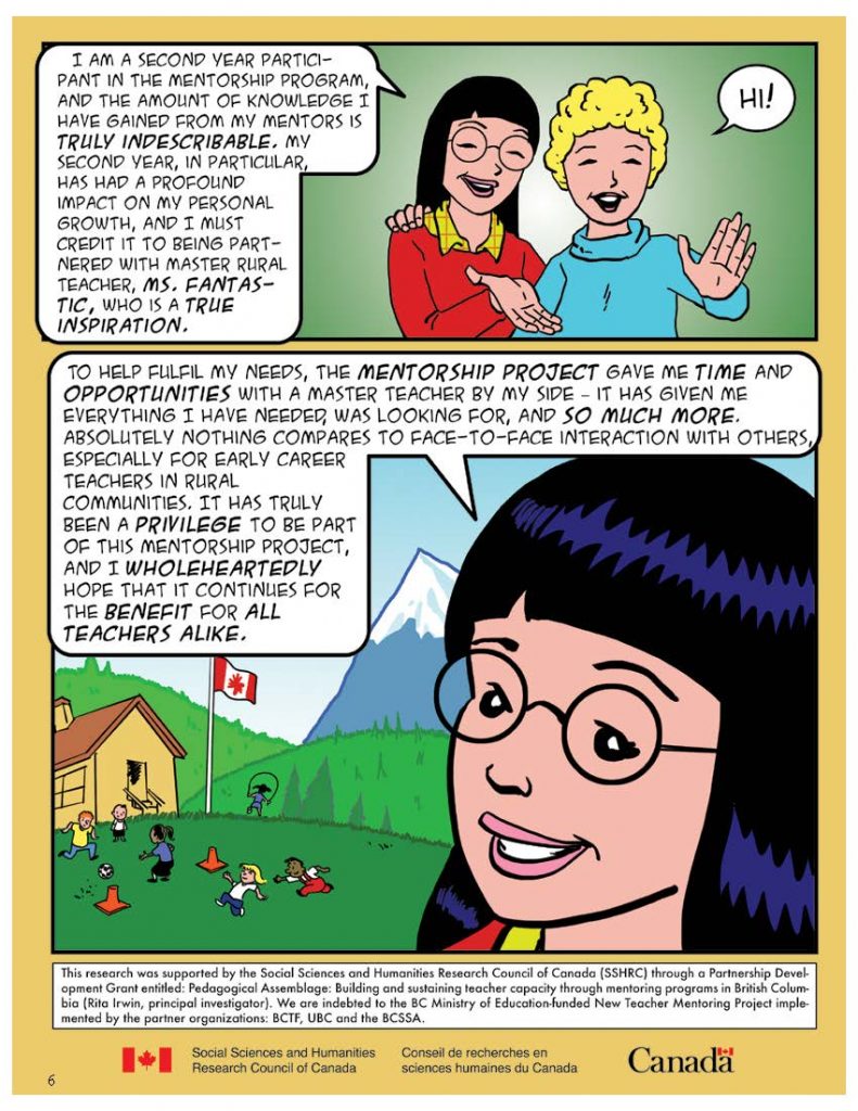 Co-created by Julain Lawrence, Ching-Chiu Lin, and Rita L. Irwin, this comic-based scholarship articulates the systemic support and strategies aimed at cultivating and transforming educational excellence through teacher mentorship (2016)